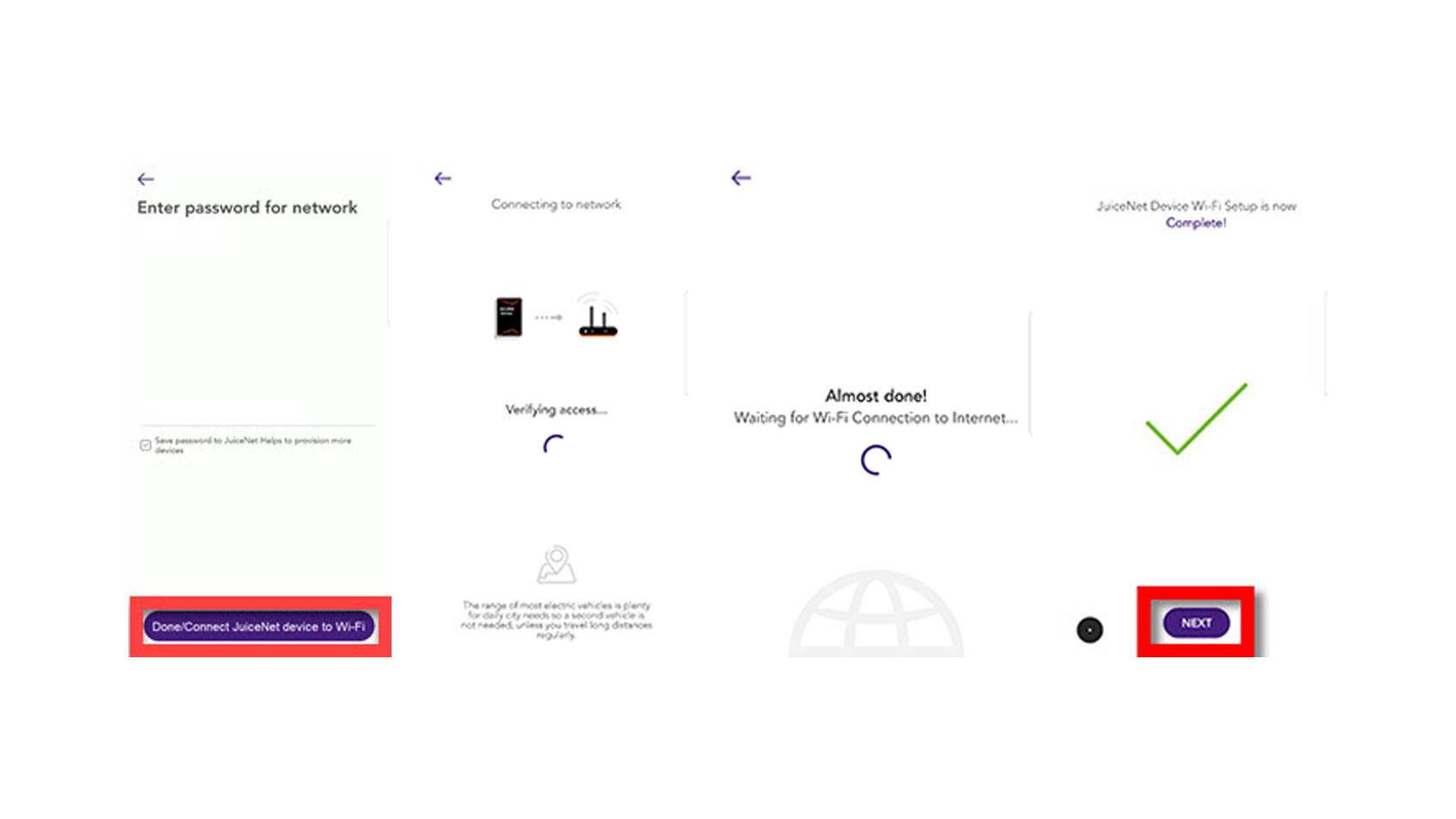 HINWEIS: Passen Sie Ihre Waybox Praxis an, indem Sie den Anweisungen auf dem Bildschirm folgen, um Ihr Fahrzeug und Ihr Ladeprofil auszuwählen, oder navigieren Sie zum JuiceNet-Dashboard auf einem PC unter https://home.juice.net.