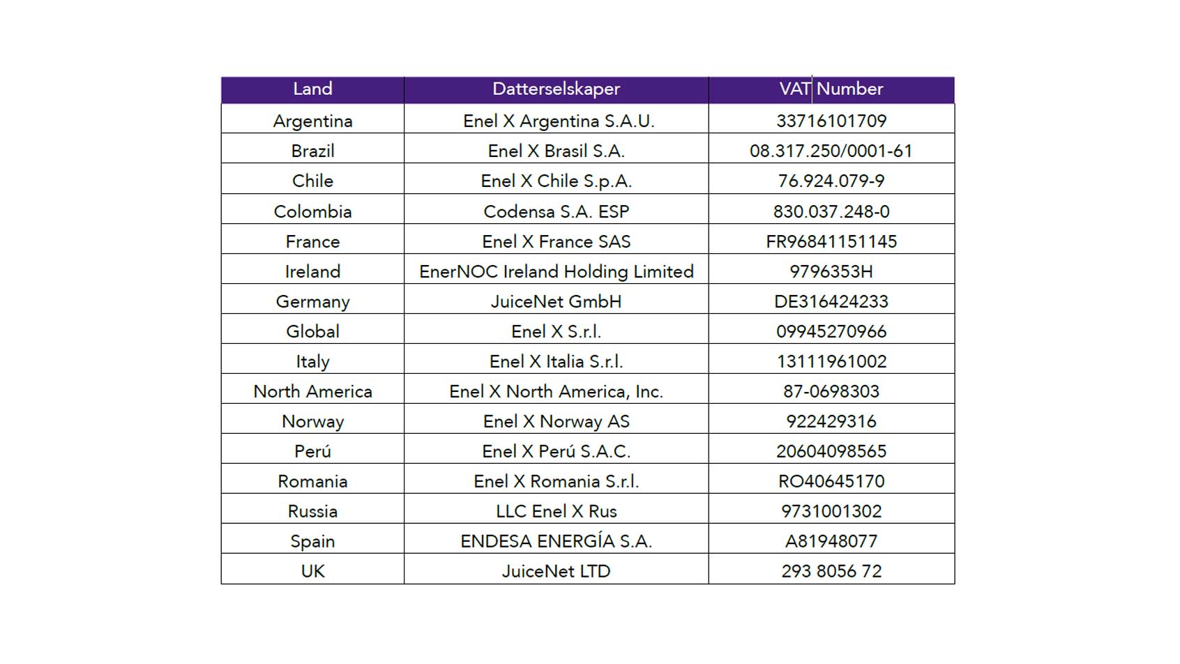 som “Enel X”), oppført i tabellen vedlagt denne garantien.