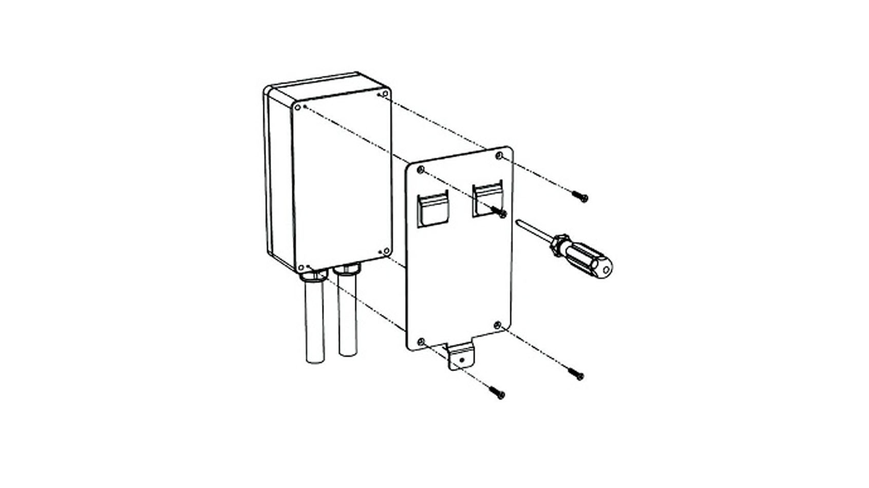 3.  Use the enclosure screws (x4) to secure the enclosure bracket onto the back of the Waybox.