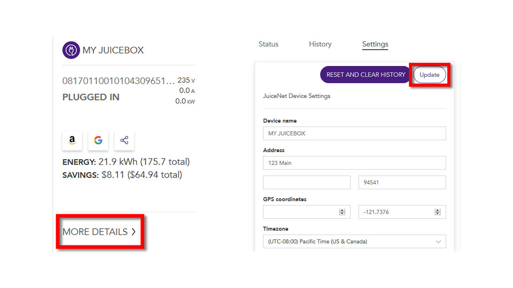 3. Identify the JuiceBox to reset, then select MORE DETAILS.